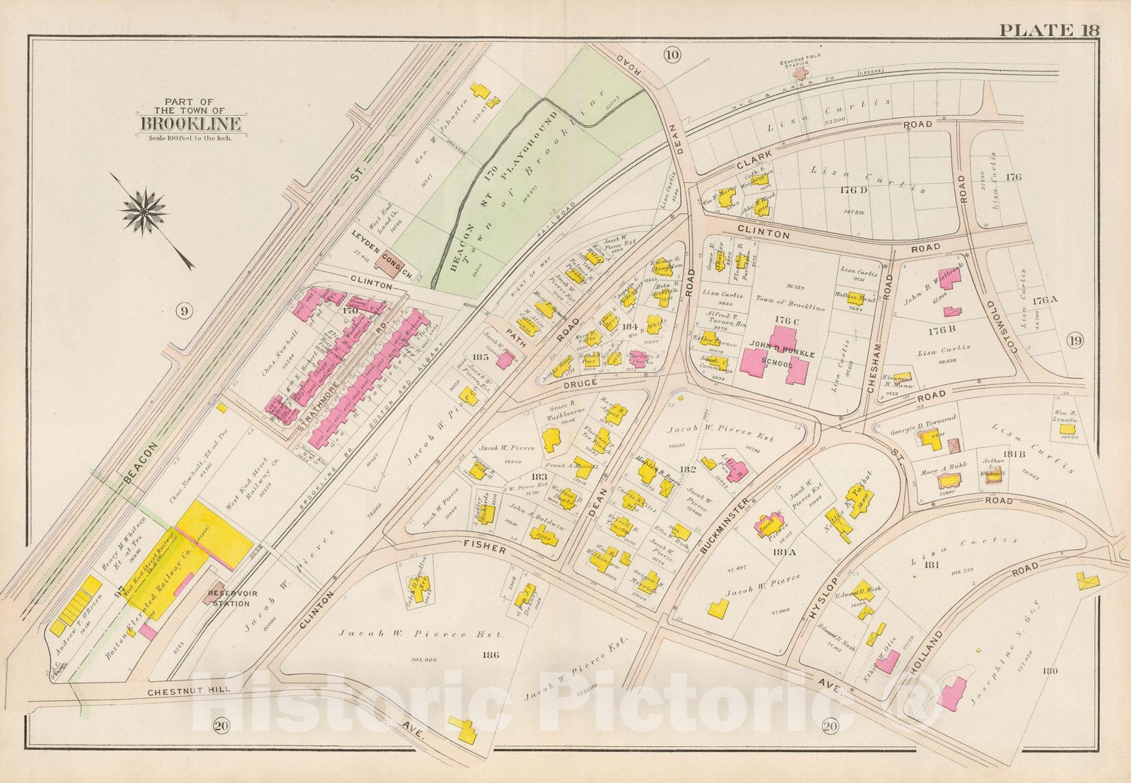 Historic Map : Atlas Town of Brookline, Brookline 1907 Plate 018 , Vintage Wall Art
