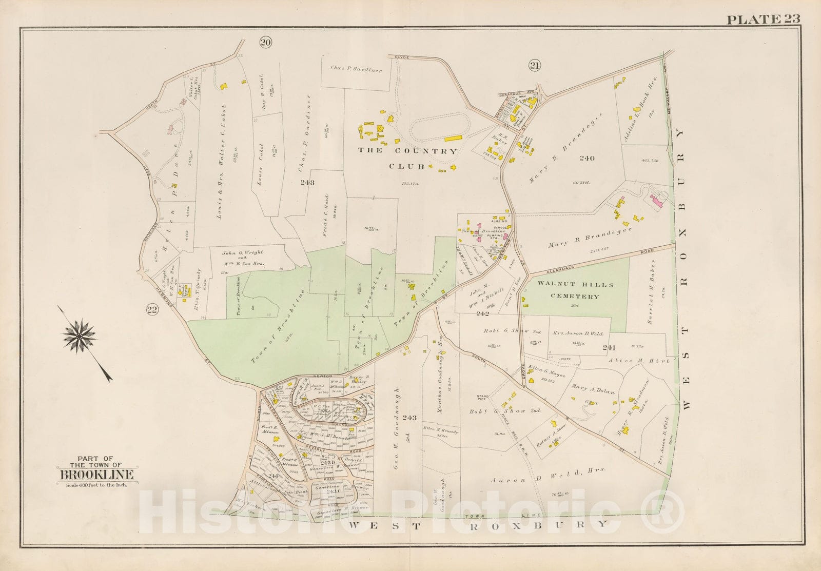 Historic Map : Atlas Town of Brookline, Brookline 1907 Plate 023 , Vintage Wall Art