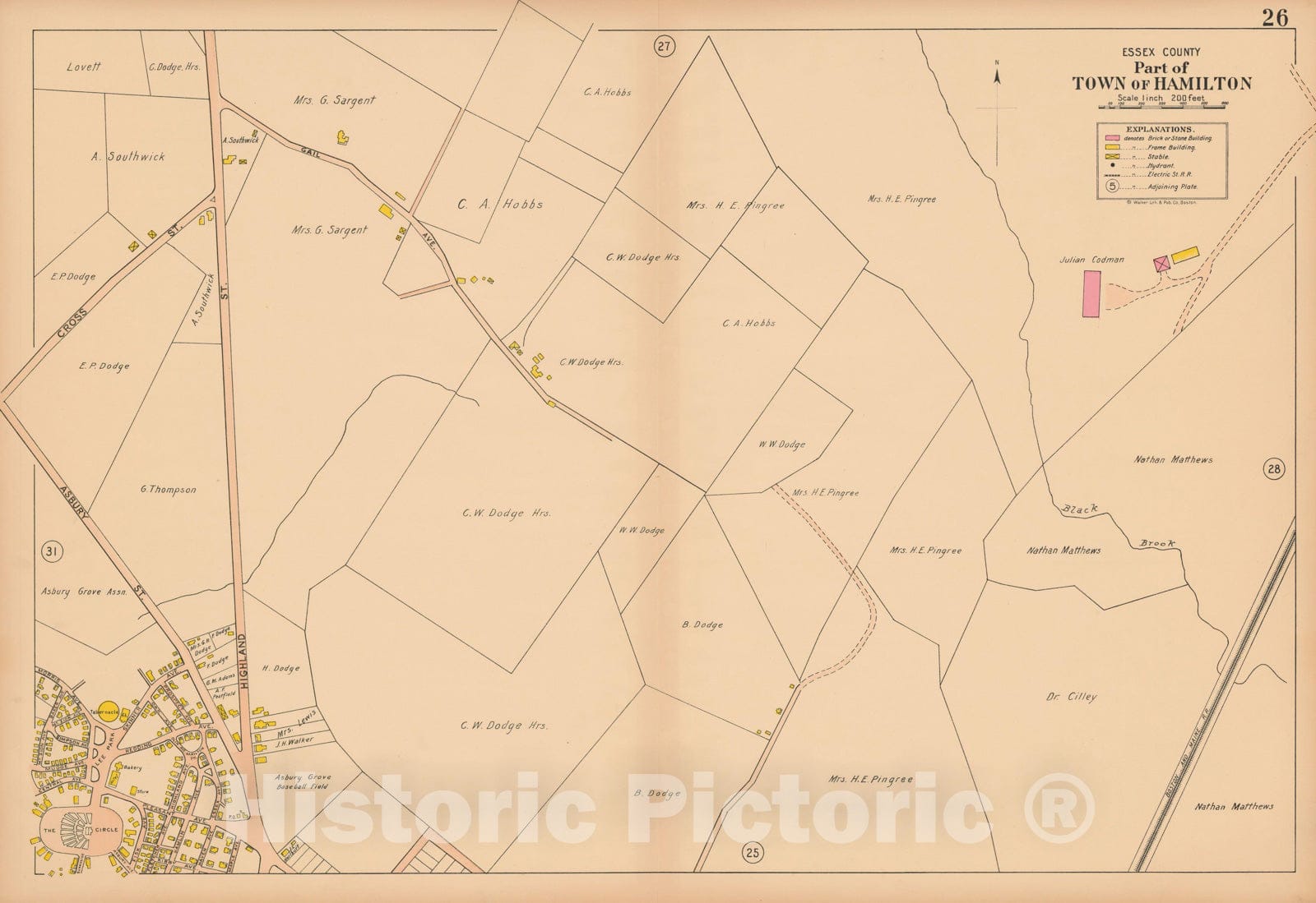 Historic Map : Atlas Towns of Topsfield, Ipswich, Essex, Hamilton and Wenham, Essex County, MA, Hamilton 1910 Plate 026 , Vintage Wall Art