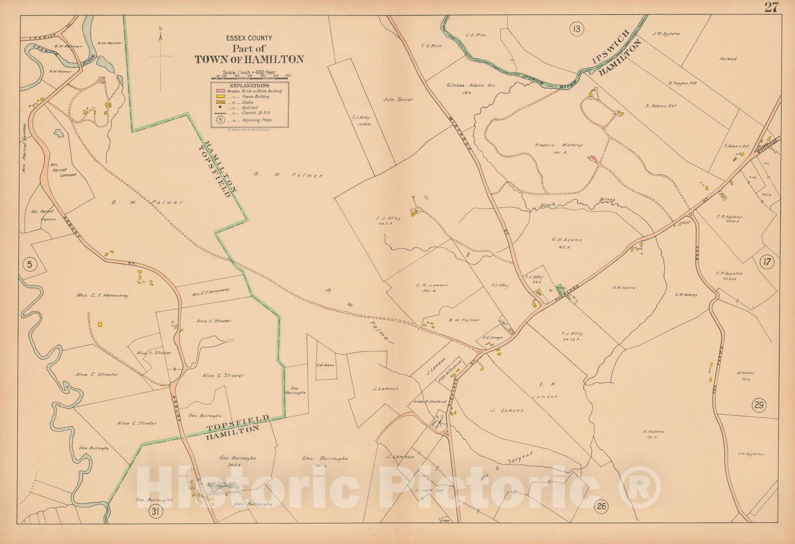 • .Historic Map : Atlas Towns of Topsfield, Ipswich, Essex, Hamilton and Wenham, Essex County, MA, Hamilton 1910 Plate 027 , Vintage Wall Art