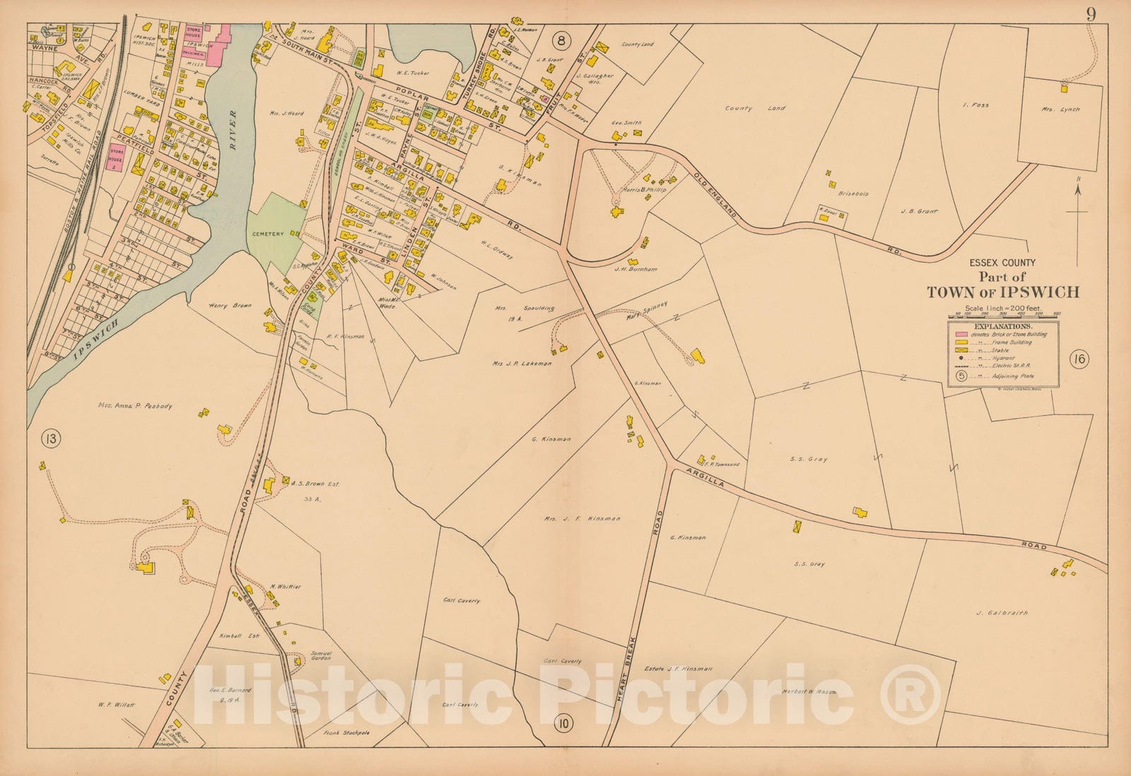 Historic Map : Atlas Towns of Topsfield, Ipswich, Essex, Hamilton and Wenham, Essex County, MA, Ipswich 1910 Plate 009 , Vintage Wall Art