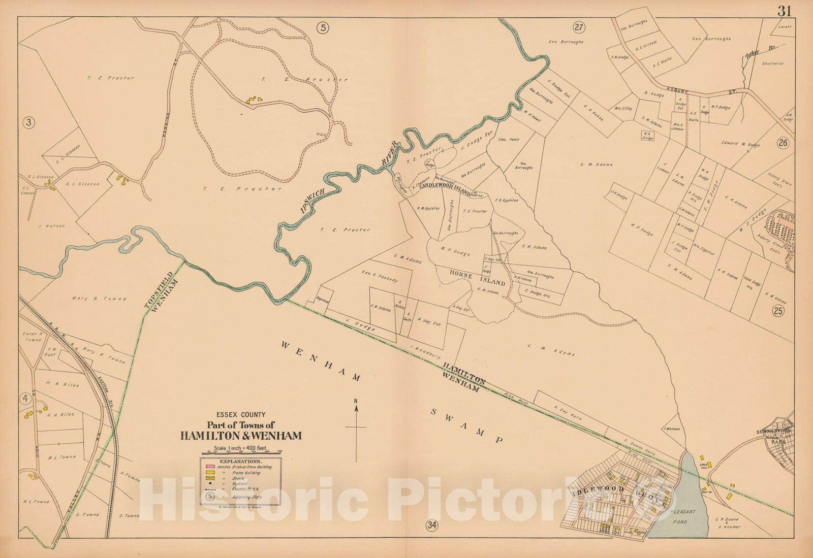 Historic Map : Atlas Towns of Topsfield, Ipswich, Essex, Hamilton and Wenham, Essex County, MA, Hamilton & Wenham 1910 Plate 031 , Vintage Wall Art