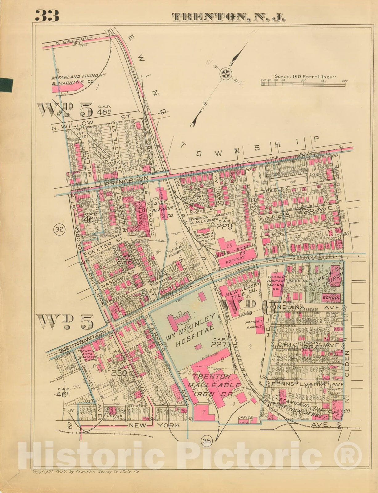Historic Map : Atlas of Trenton, Trenton 1930 Plate 033 , Vintage Wall Art