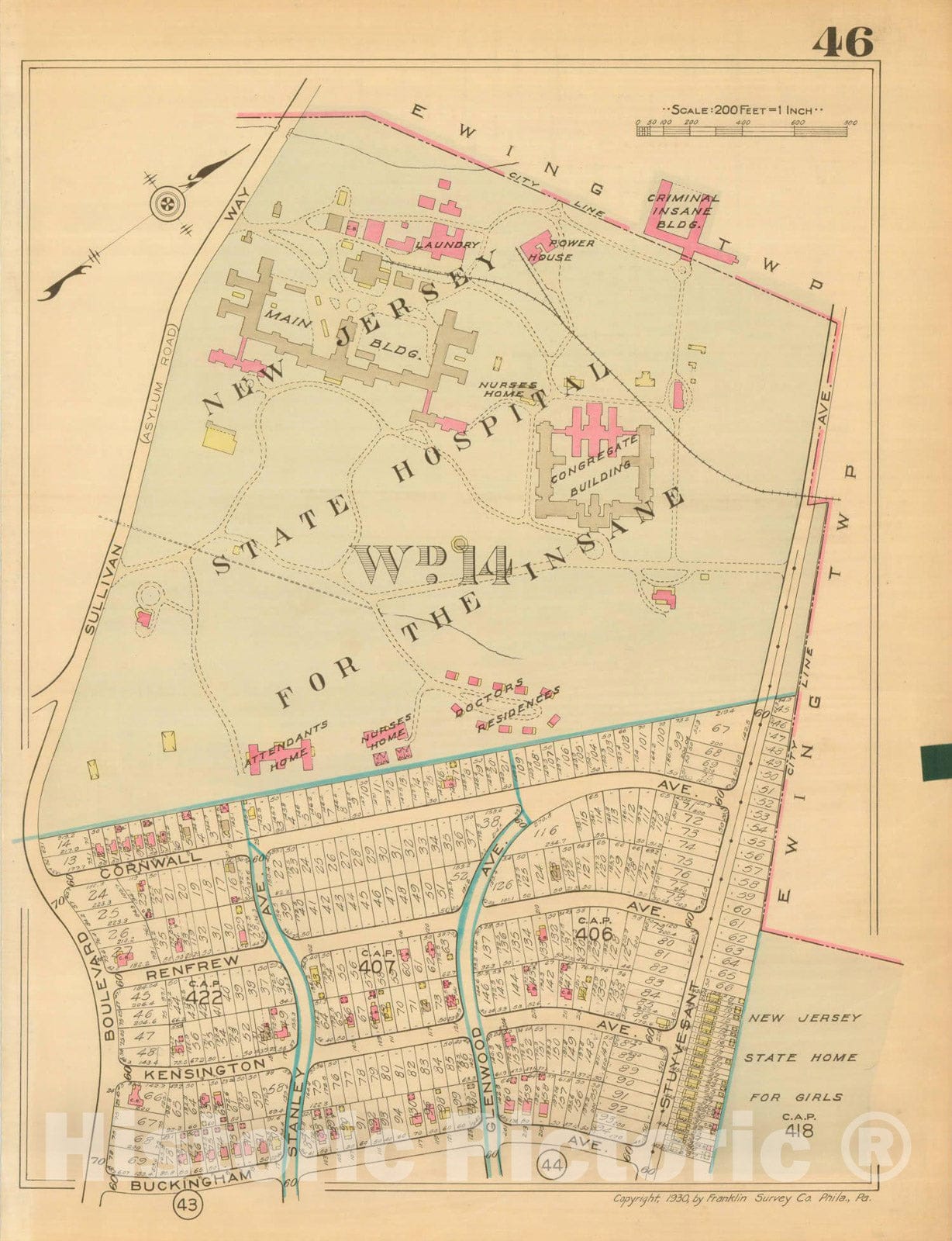 Historic Map : Atlas of Trenton, Trenton 1930 Plate 046 , Vintage Wall Art