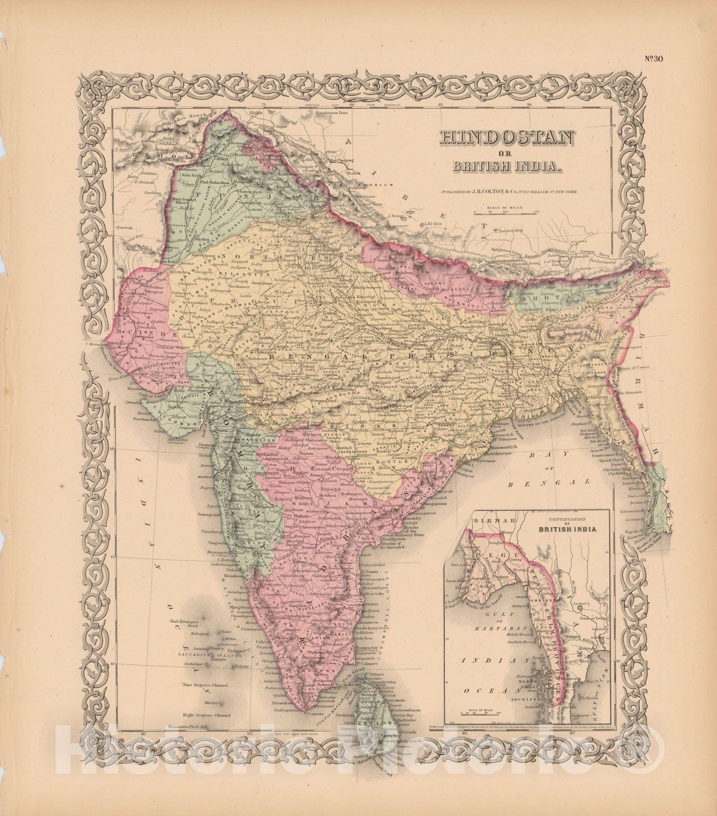 Historic Map : Hindostan & India 1856 , Colton's Atlas World , Vintage Wall Art