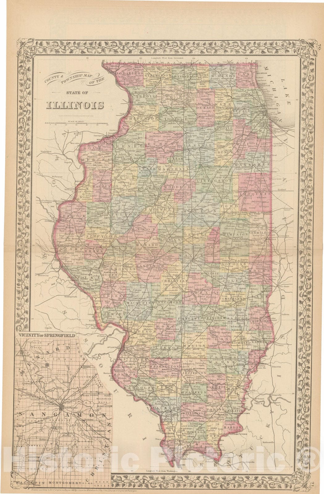 Historic Map : Illinois 1882 , Mitchell's New General Atlas , Vintage Wall Art
