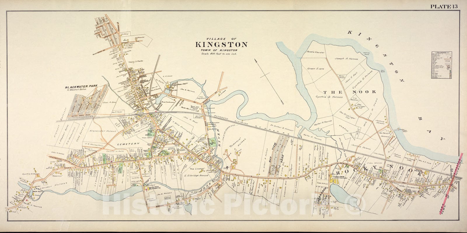 Historic Map : MA, Kingston 1903 Plate 013 , New Topographical Atlas of Surveys of Plymouth County ... , Vintage Wall Art
