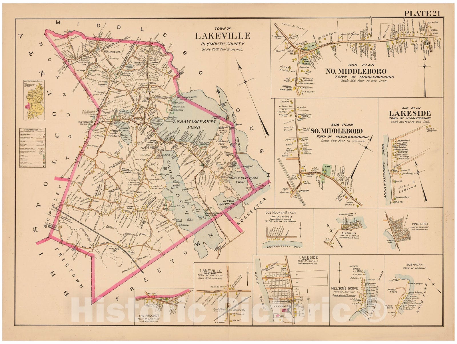 Historic Map : MA, Lakeville 1903 Plate 022 , New Topographical Atlas of Surveys of Plymouth County ... , Vintage Wall Art
