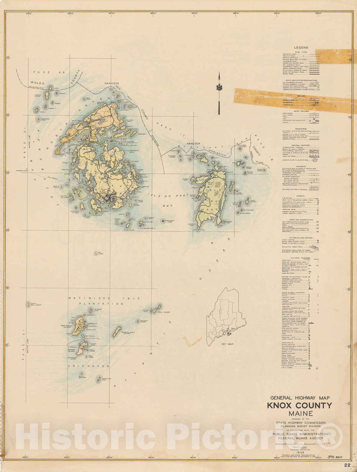 Historic Map : Maine General Highway County Maps, Knox 1938 Plate 022 , Vintage Wall Art