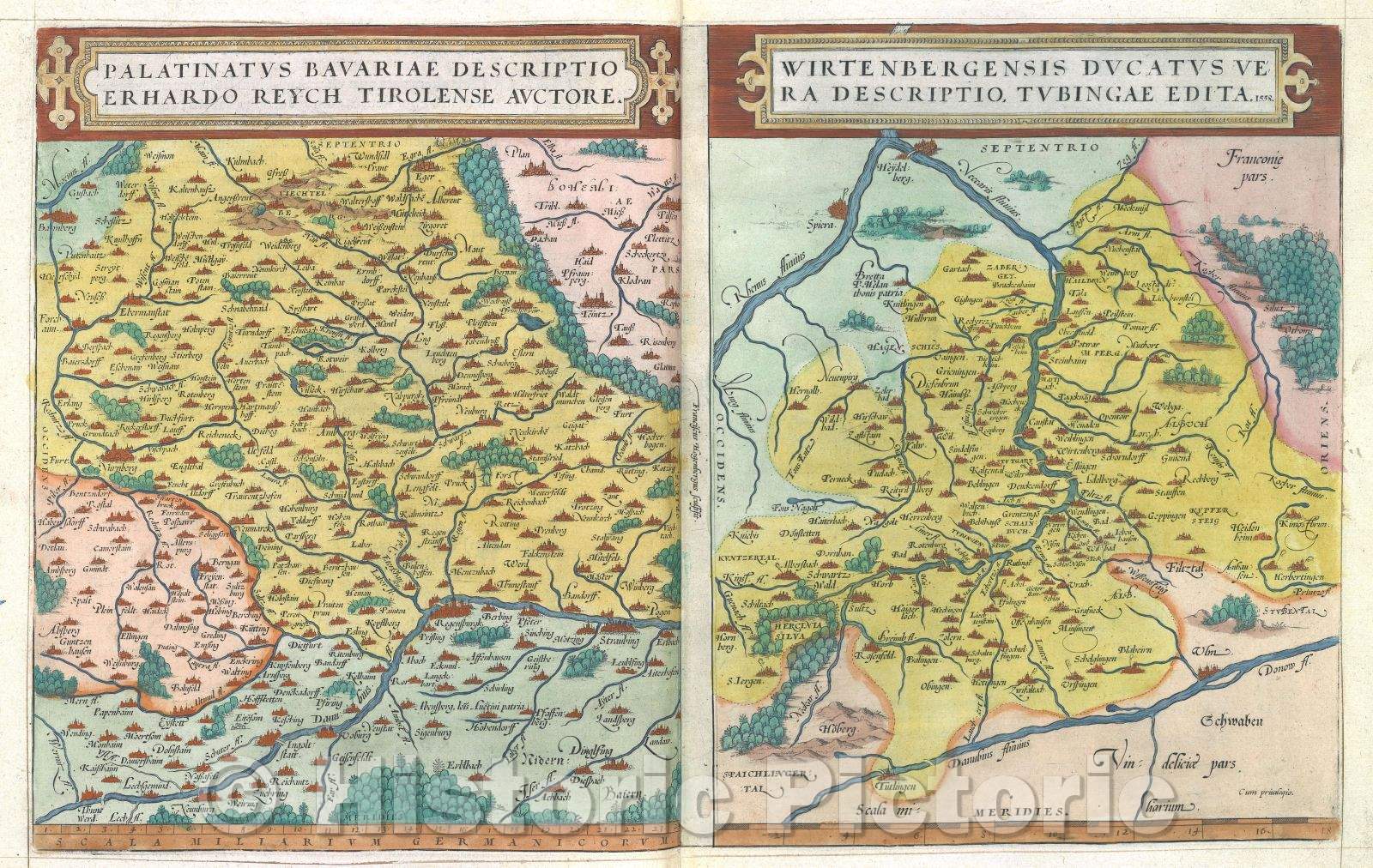 • .Historic Map : Palatinatus Bavariae Descriptio Erhardo Reych Tirolense Auctore, 1575 , Vintage Wall Art