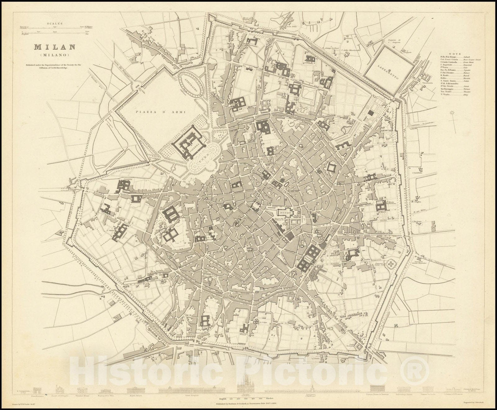 Historic Map : Milan , Milano, 1832, Vintage Wall Art