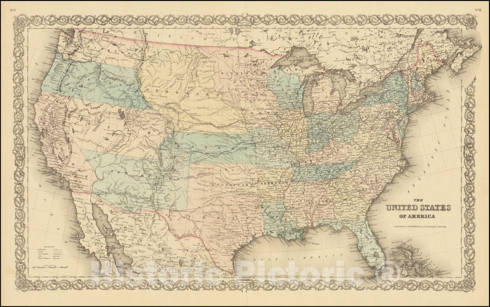 Historic Map : The United States of America, 1855, Vintage Wall Art