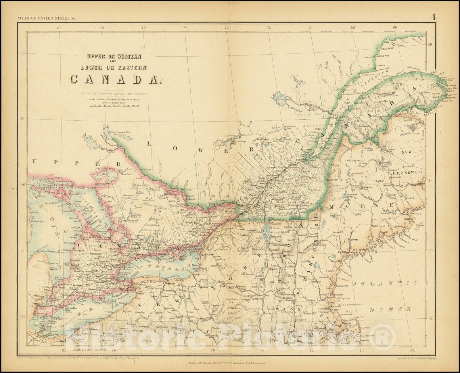 Historic Map : Upper or Western and Lower or Eastern Canada, 1857, Vintage Wall Art