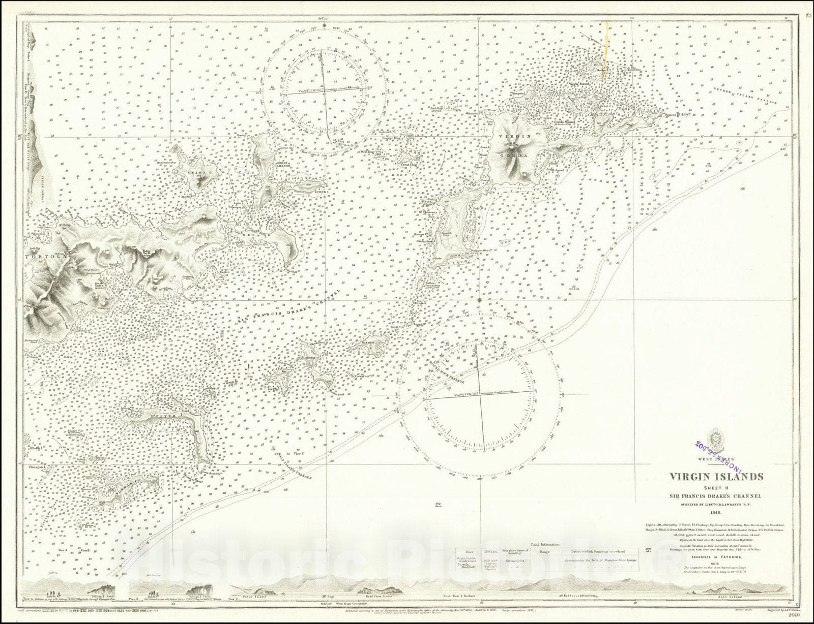 Historic Map : Virgin Islands Sheet II Sir Francis Drake's Channel Surveyed By Lieut. G.B. Lawrance R.N. 1848.,1861 (1926), Vintage Wall Art
