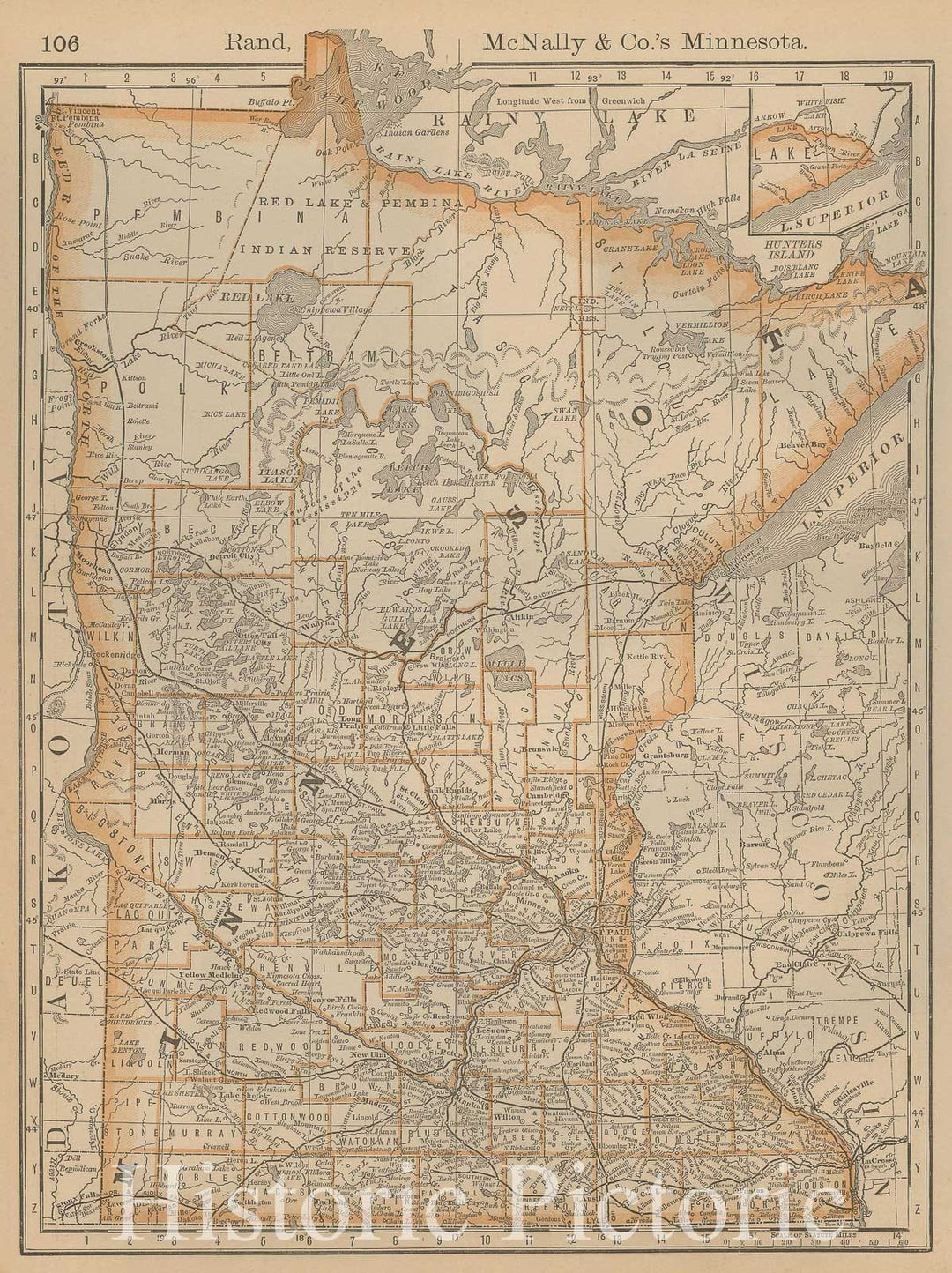 Historic Map : Minnesota 1897 , The Century Atlas World , Vintage Wall Art