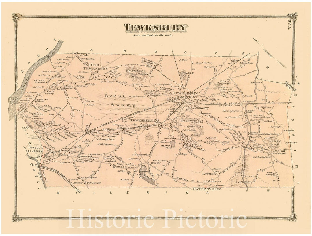 Historic Map : County Atlas of Middlesex Massachusetts, Tewksbury 1875 , Vintage Wall Art