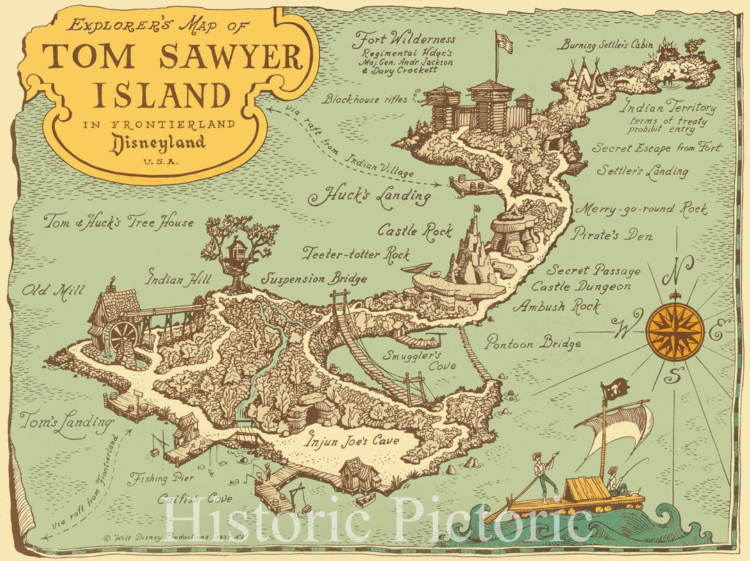 Historic Map : Explorer's Tom Sawyer Island in Frontierland Disneyland U.S.A., 1957, Vintage Wall Art