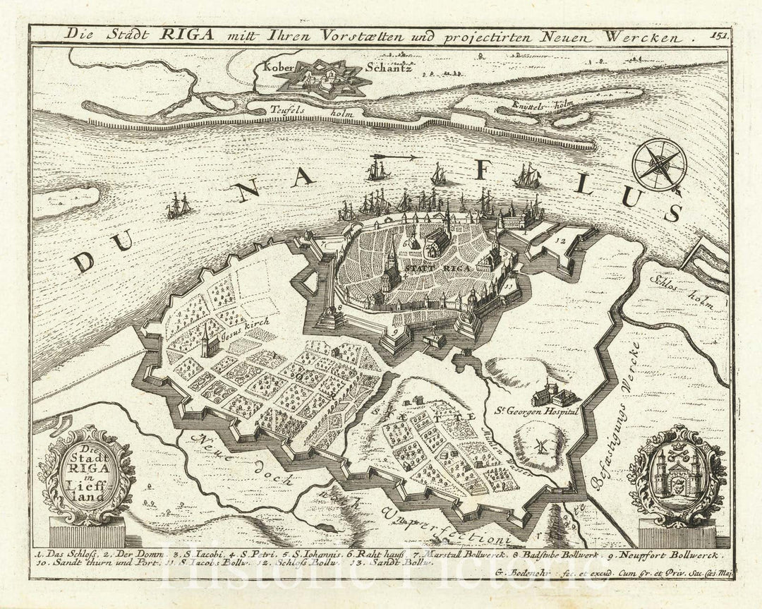 Historic Map : Die Stadt Riga mitt Ihren Vorstaetten und projectirten Neuen Wercken, 1720, Vintage Wall Art