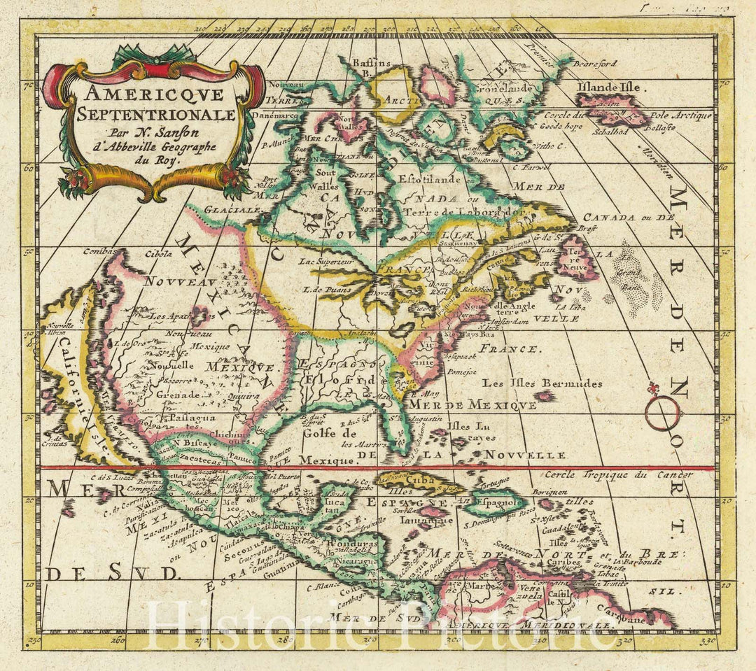 Historic Map : Americque Septentrionale Par N.Sanson,, California as an Island,1683, Vintage Wall Art