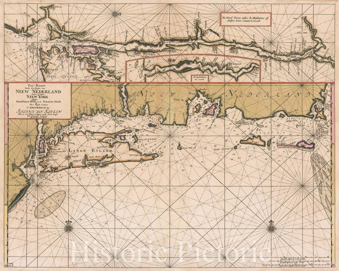 Historic Map - Pas-Kaart vande Zee Kusten van Niew Nederland anders Genaamt Niew York tusschen Renselaars Hoek en de Staaten Hoek, 1687, Johannes Van Keulen - Vintage Wall Art