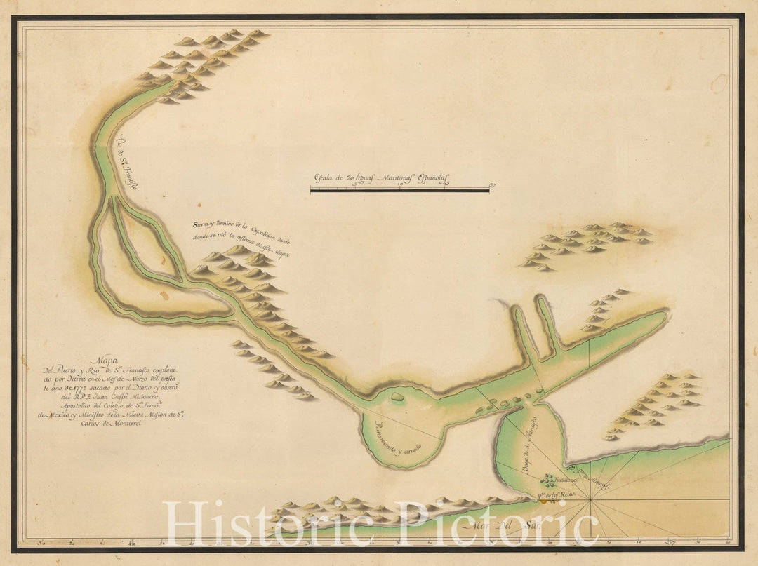Historic Map - Mapa Del Puerto y Rio de Sn Francisco explorado por Tierra en el Mes de Marzo/The First Map of San Francisco Bay, 1772, Pedro Font - Vintage Wall Art