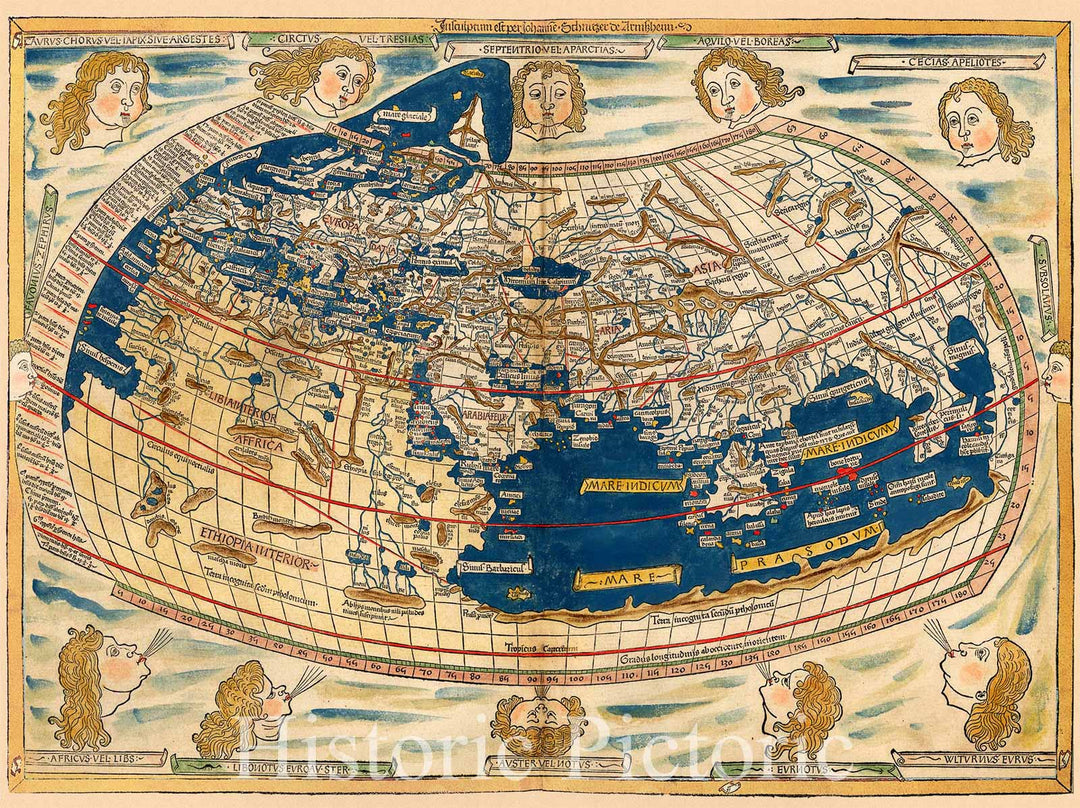 Historic Map - World, 1482, Claudius Ptolemy - Vintage Wall Art