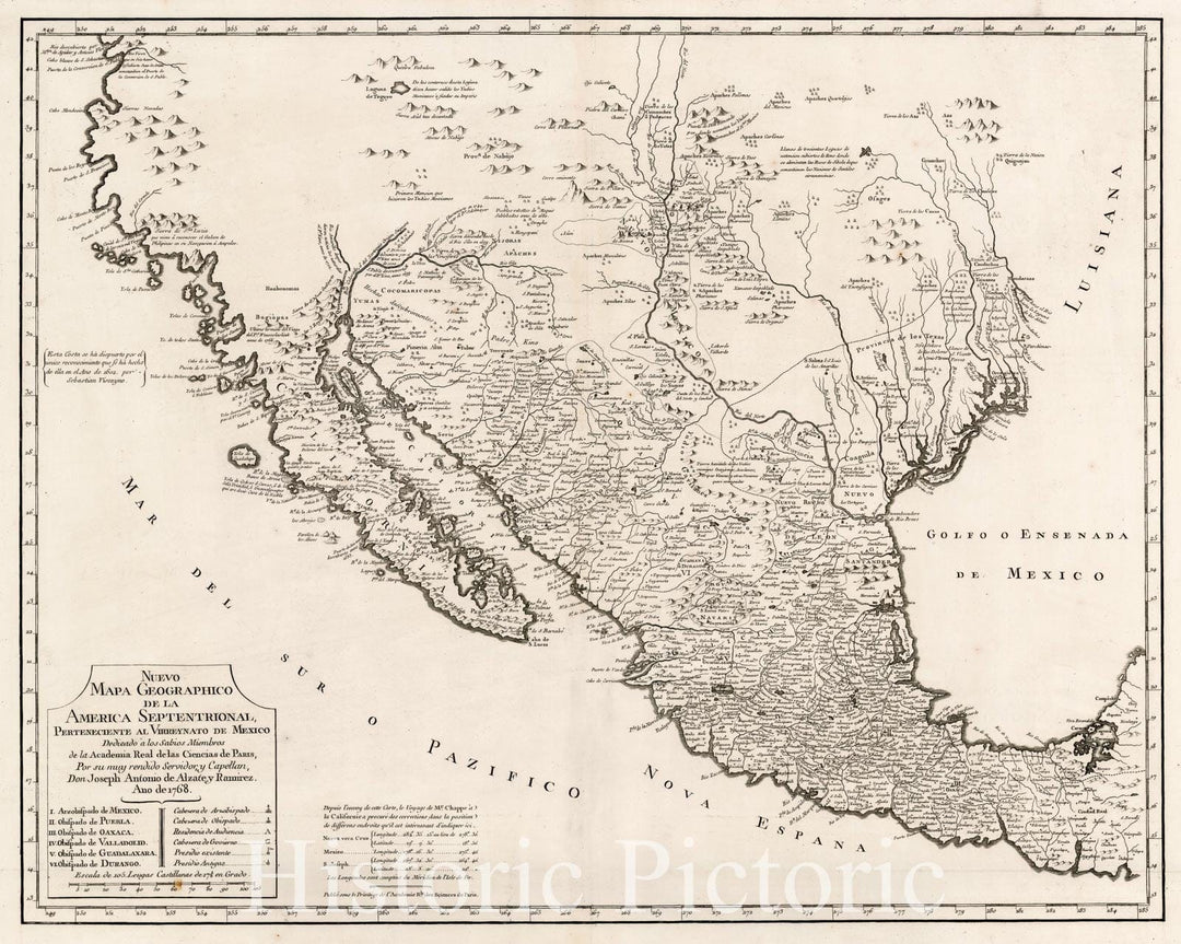 Historic Map - Nuevo Mapa Geographico De La America Septentrional, Perteneciente al Virreynato de Mexico, 1768, Jose Antonio de Alzate y Ramirez - Vintage Wall Art