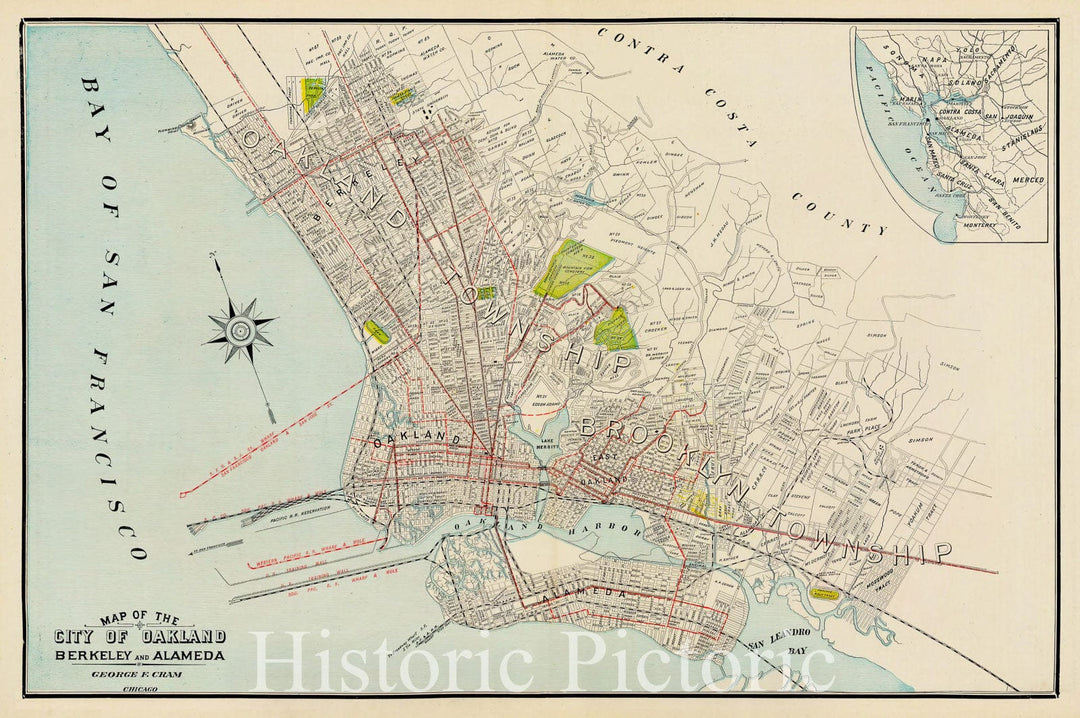 Historic Map - Map of The City of Oakland Berkeley and Alameda, 1899, George F. Cram - Vintage Wall Art