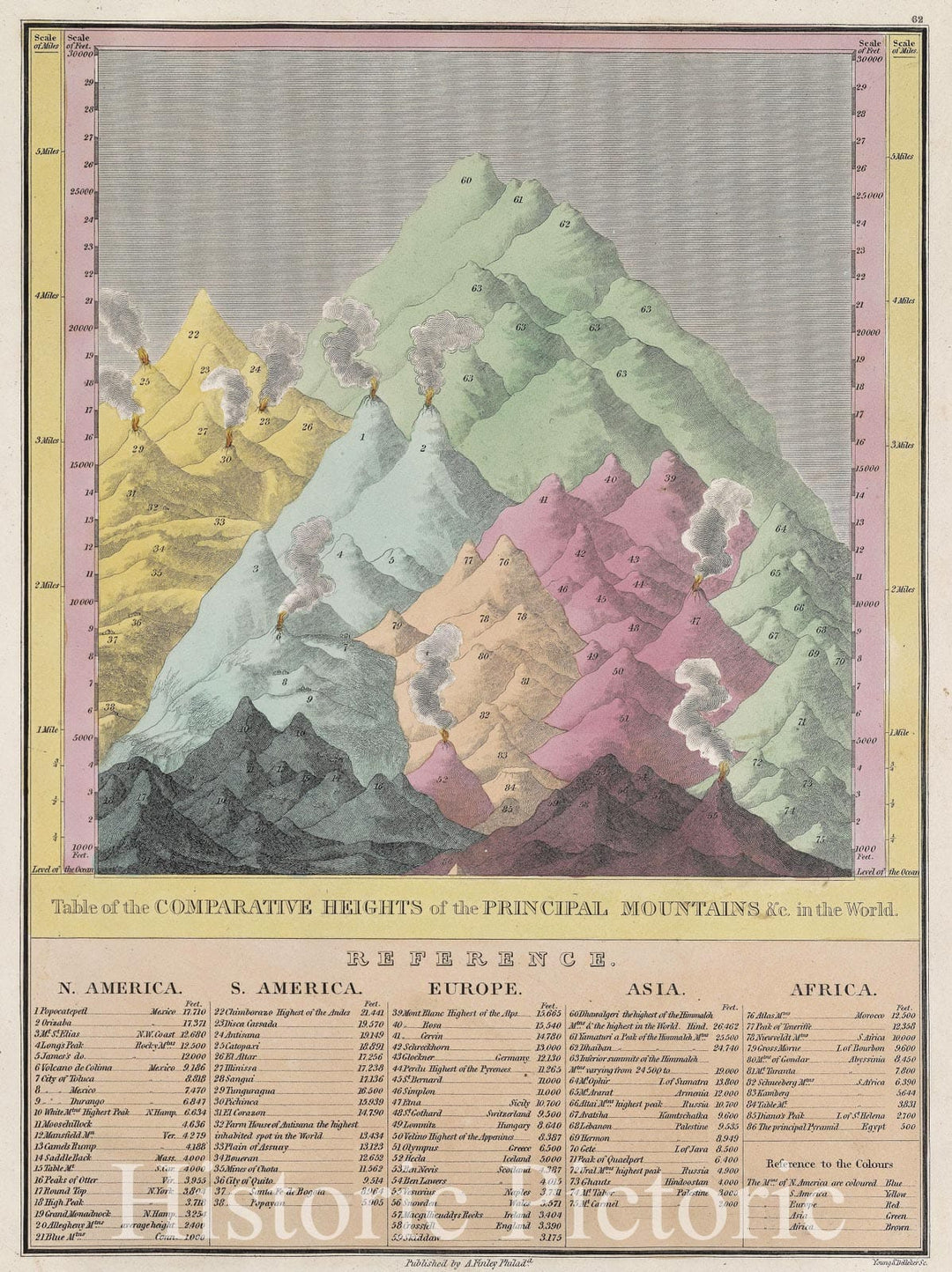 Historic Map : Table of the comparative heights of the principal mountains andc. in the world., 1832 , Vintage Wall Art