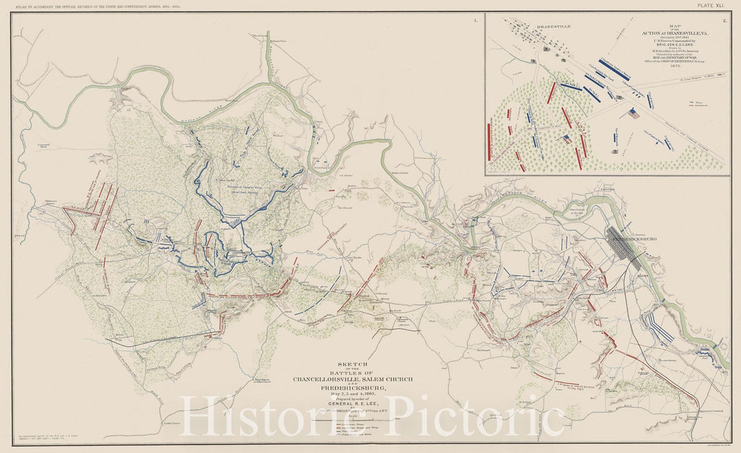 Historic Map : Sketch of the battles of Chancellorsville, Salem Church and Fredericksburg, May 2, 3 and 4, 1863., 1875 , Vintage Wall Art