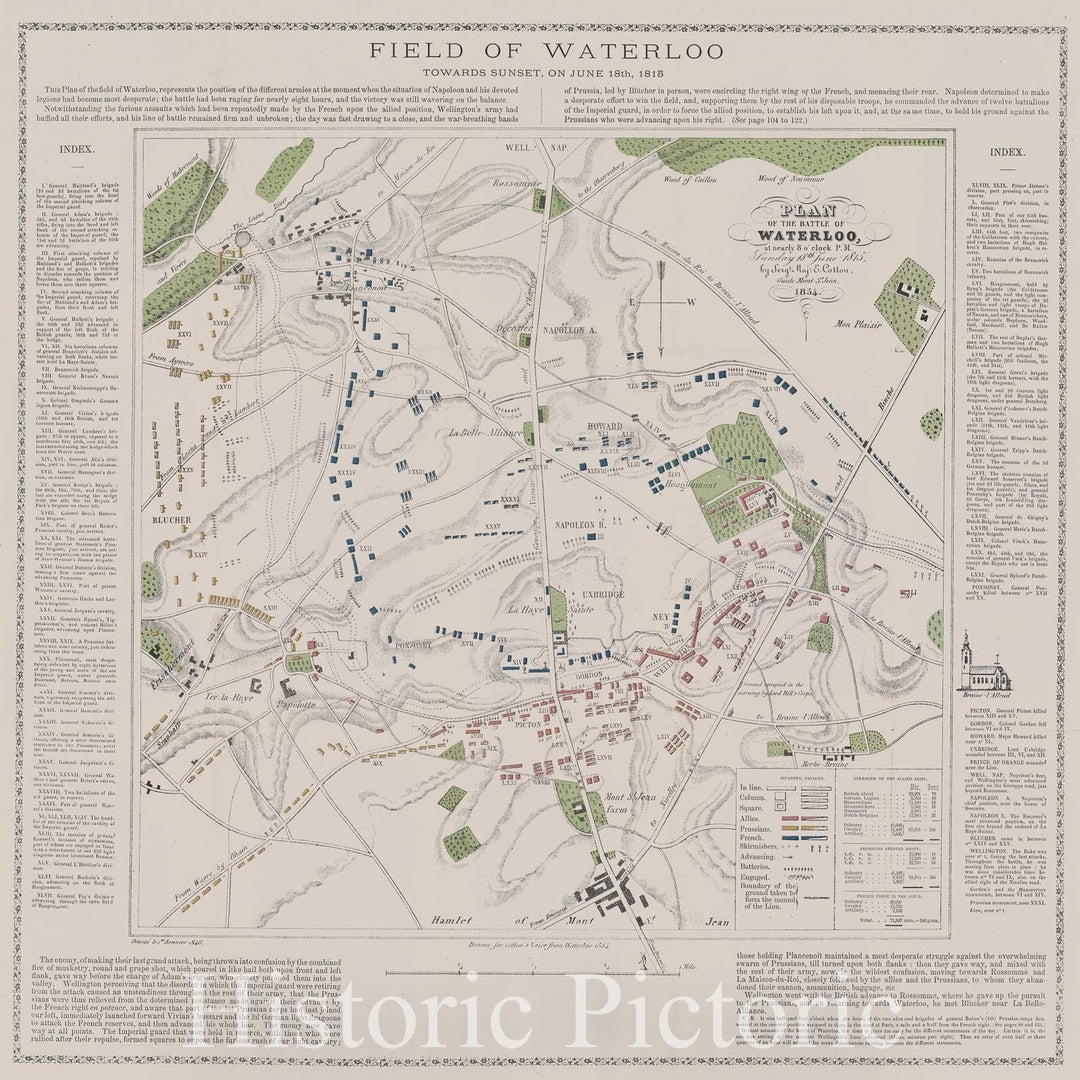 Historic Map : Plan of the Battle of Waterloo at nearly 8 o'clock p.m., Saturday 18th June 1815 by Sergt. Majr. E. Cotton., 1854 , Vintage Wall Art