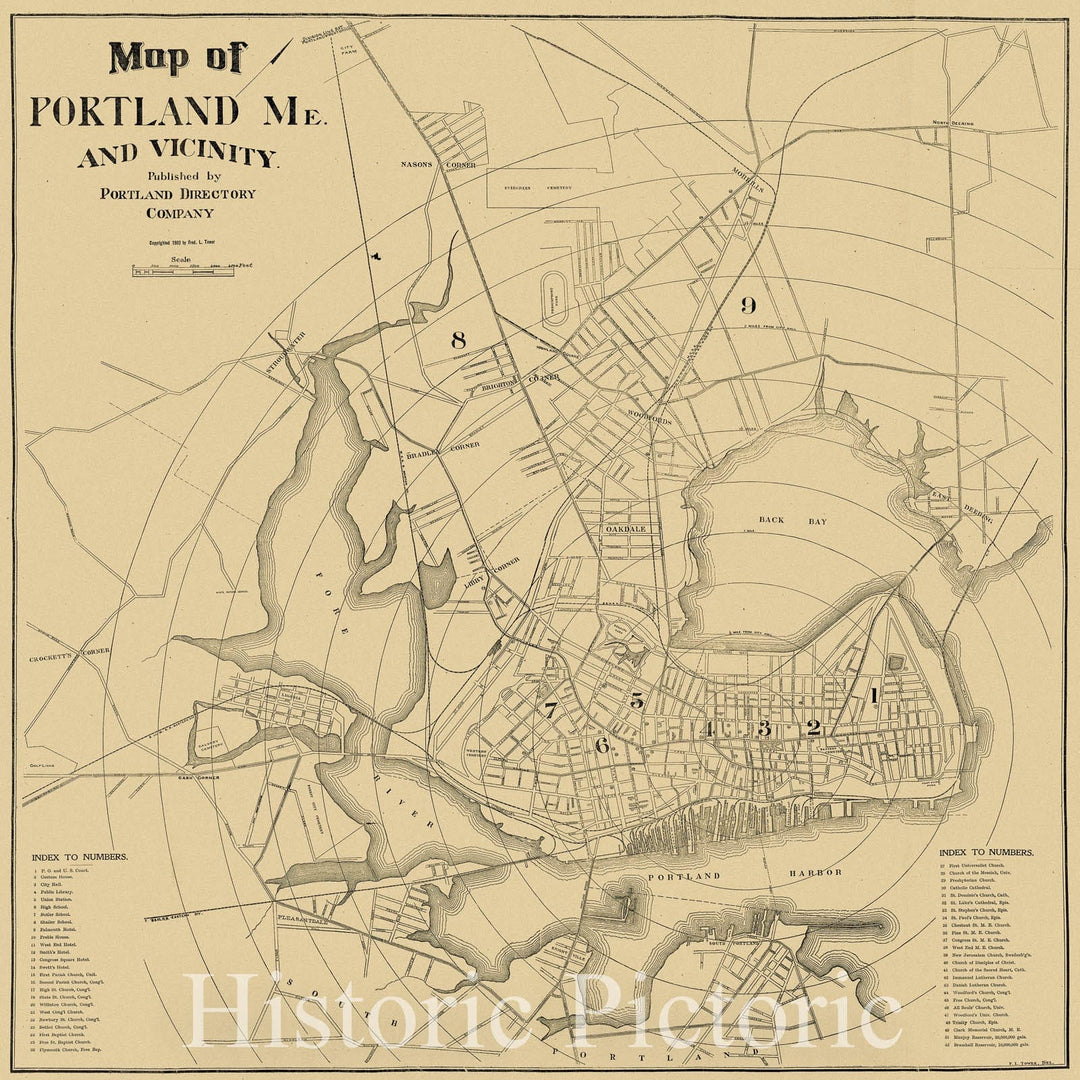 Historic Map : Map of Portland, Me. and Vicinity, 1902 , Vintage Wall Art