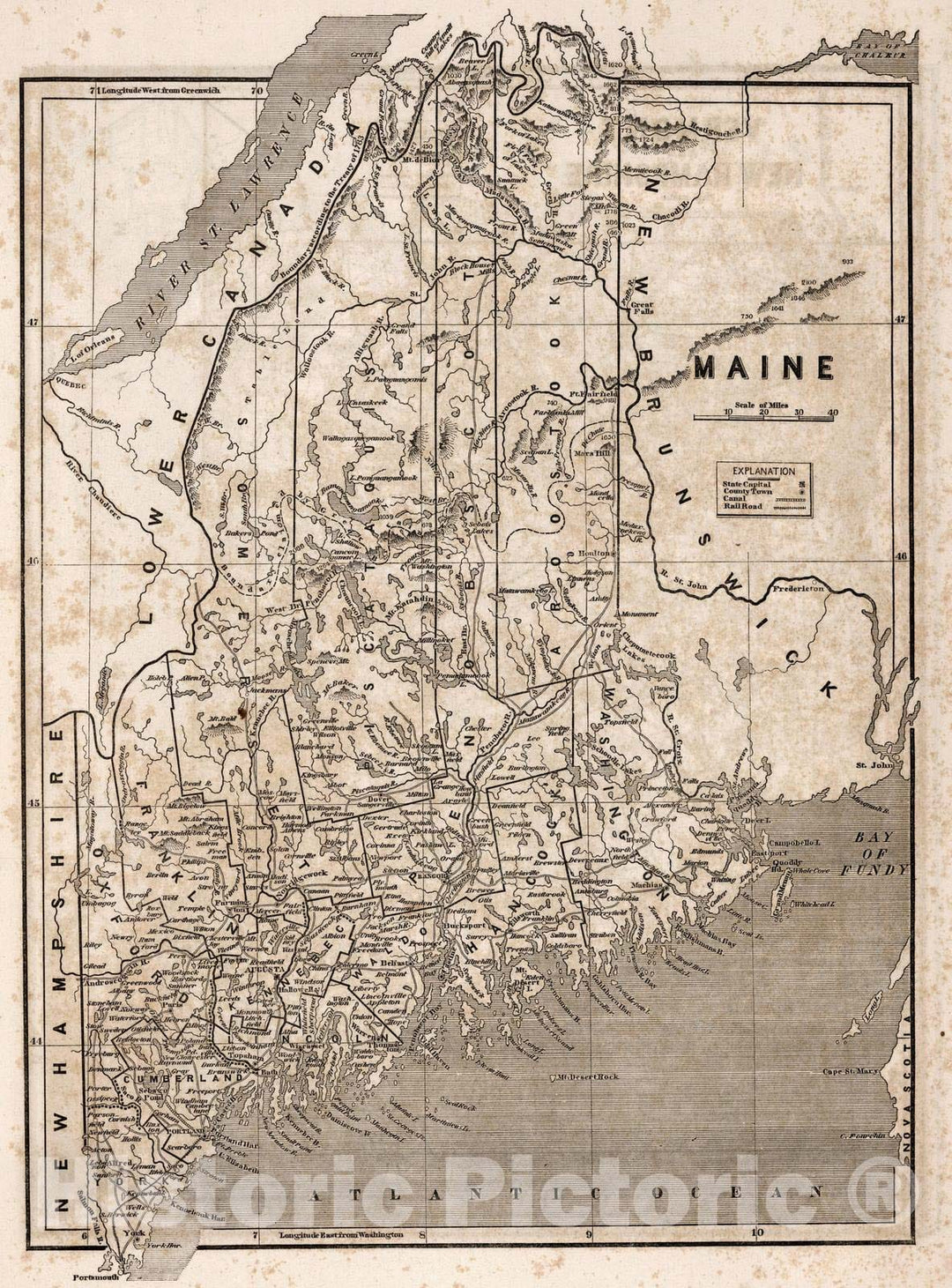 Historic Map : National Atlas - 1842 Maine - Vintage Wall Art