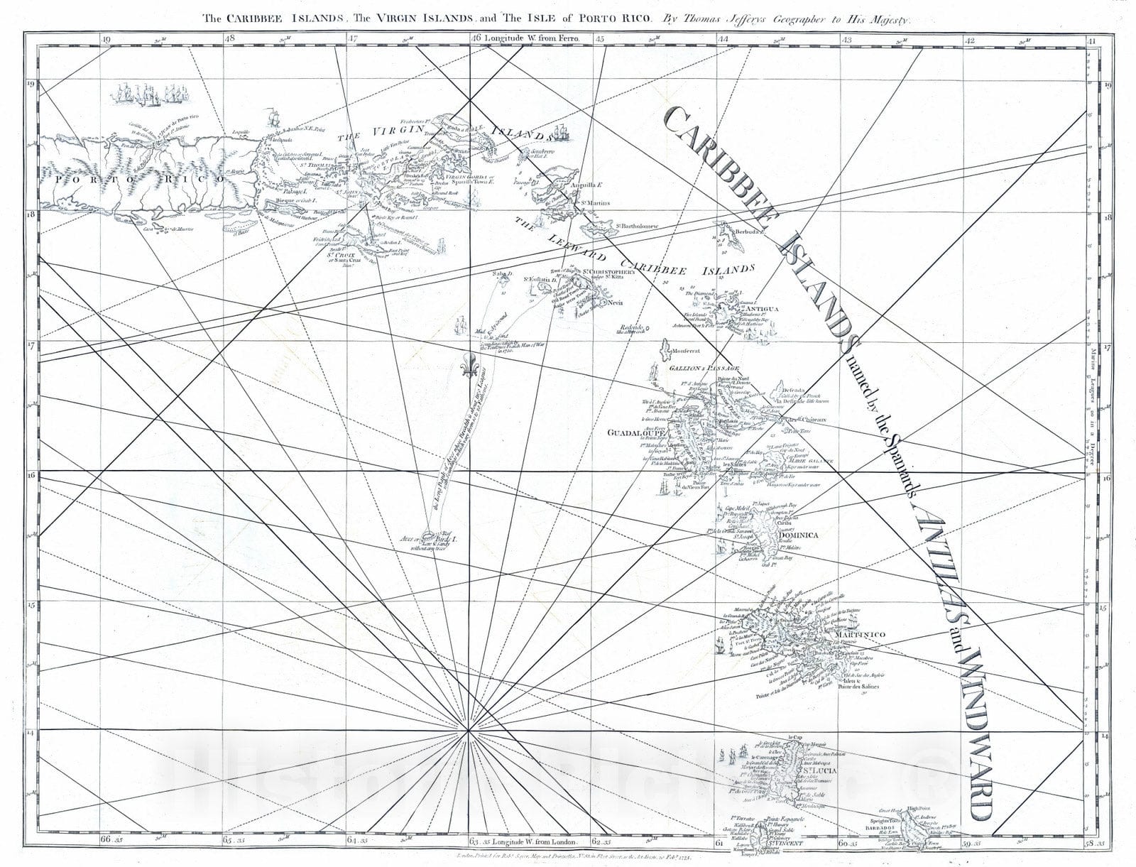 Historic Map : 1775 The Caribbee Islands, the Virgin Islands, and the Isle of Porto Rico. - Vintage Wall Art