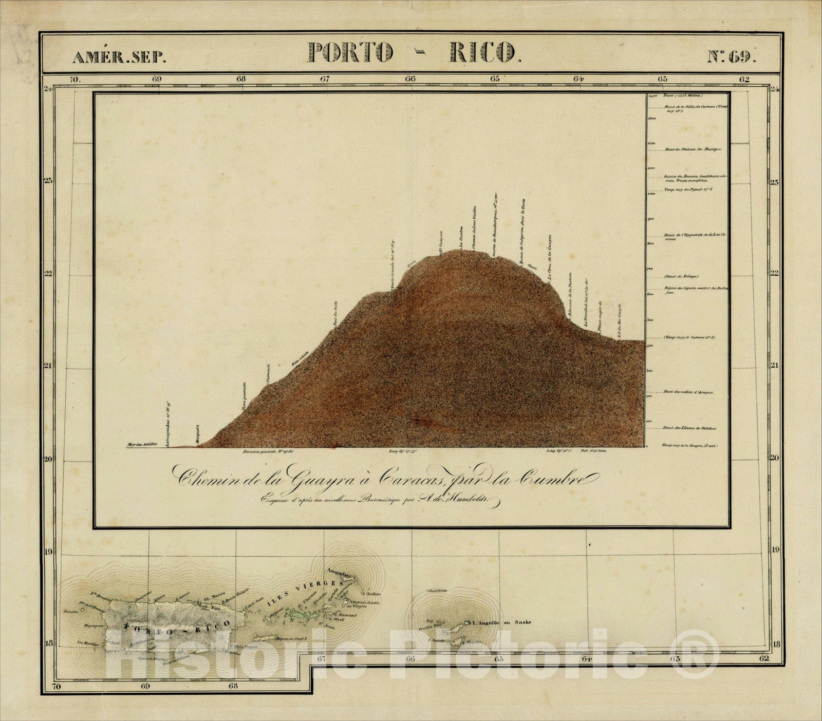 • .Historic Map : Amer. Sep. No. 69. Porto-Rico [and the Virgin Islands], 1825, Philippe Marie Vandermaelen, v1, Vintage Wall Art