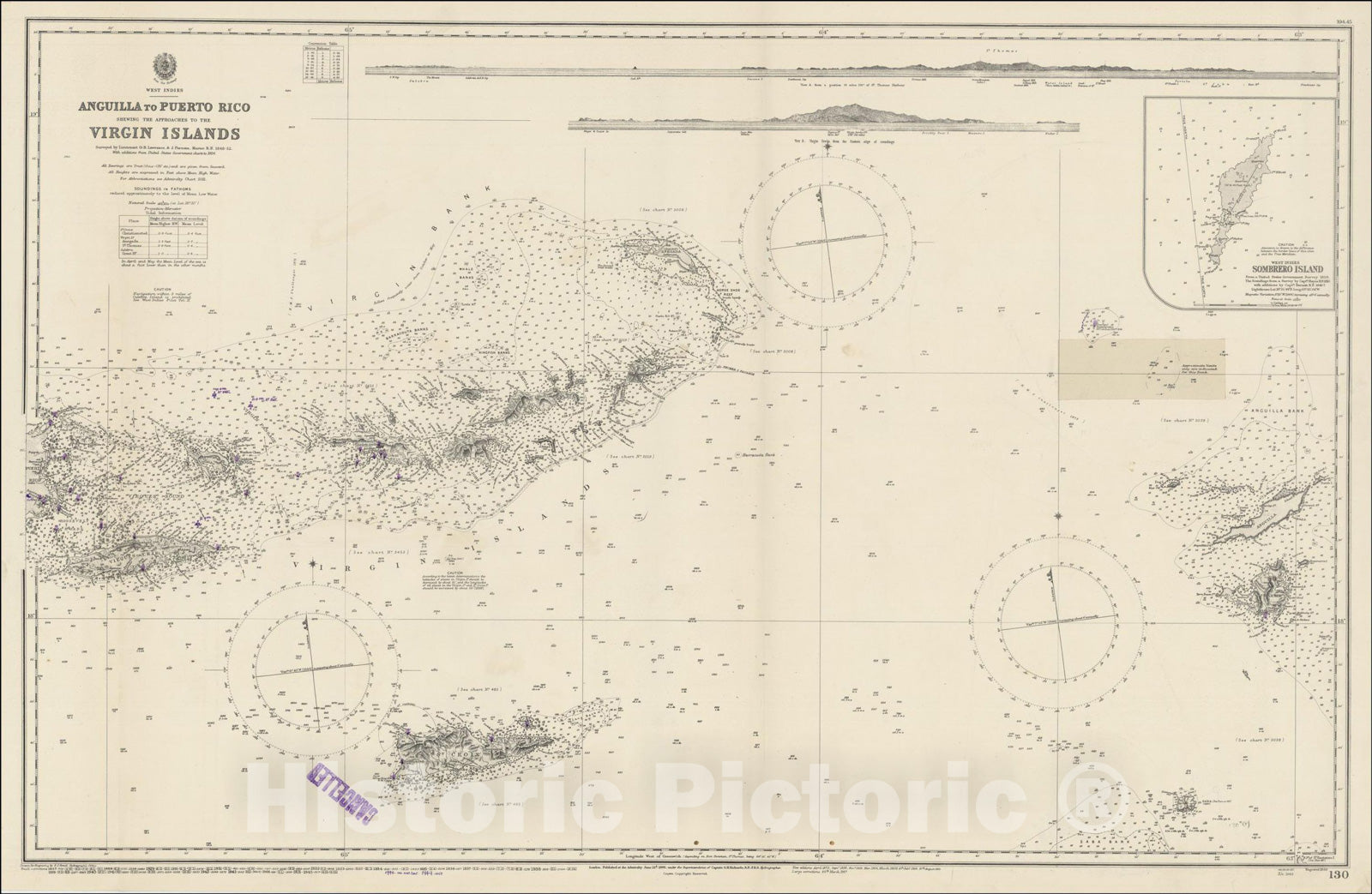 Anguilla to Puerto Rico Shewing The Approaches ToThe Virgin Islands, 1927, British Admiralty