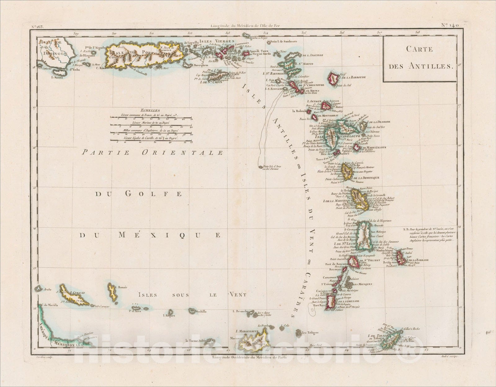 Historic Map : Carte Des Antilles [Puerto Rico and the Virgin Islands to Curacao, Bonair and Aruba], 1785, Pierre Antoine Tardieu, Vintage Wall Art