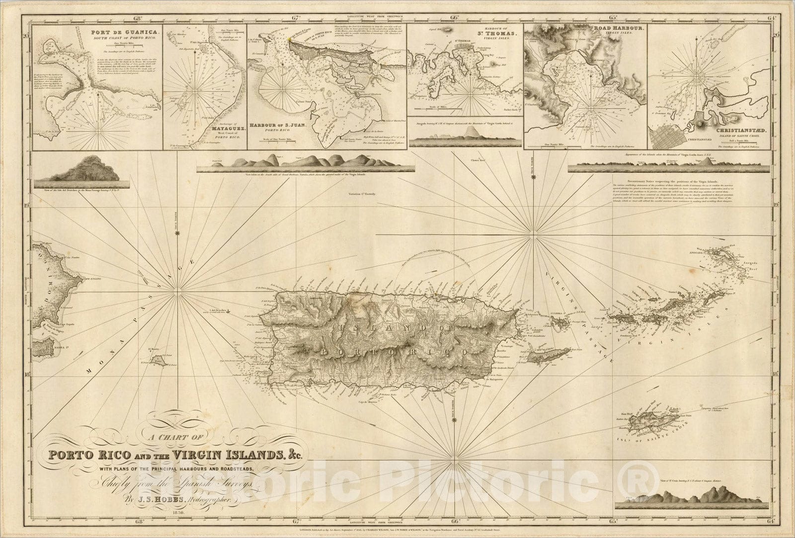 • .Historic Map : A Chart of Porto Rico and the Virgin Islands, 1850, C W Hobbs, Vintage Wall Art