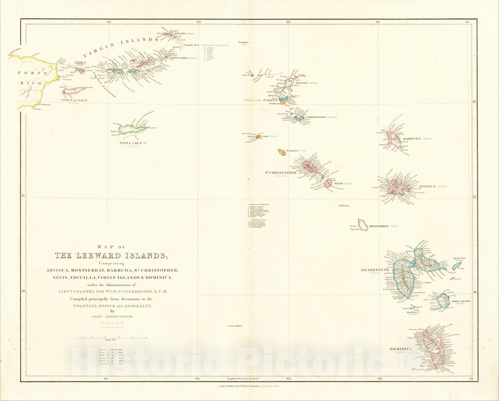 Historic Map : Map of The Leeward Islands; Comprising Antigua, Montserrat, Barbuda, St. Christopher, Nevis, Anguilla, Virgin Islands & Dominica, 1839, v1, Vintage Wall Art
