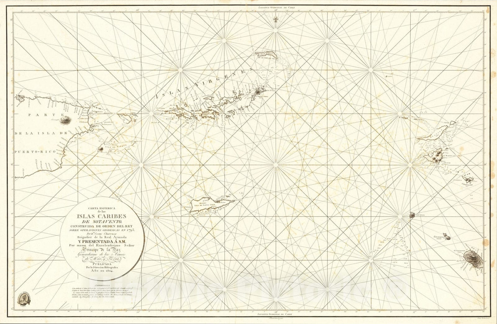 Virgin Islands, St. Kits, St. Barts, St. Martin, 1804, Direccion Hidrografica de Madrid