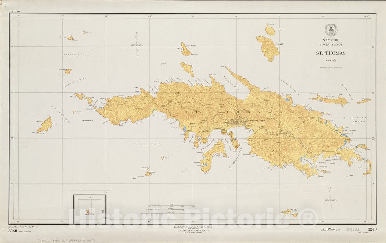 Historical Map, 1922 West Indies, Virgin Islands, St. Thomas, Vintage Wall Art
