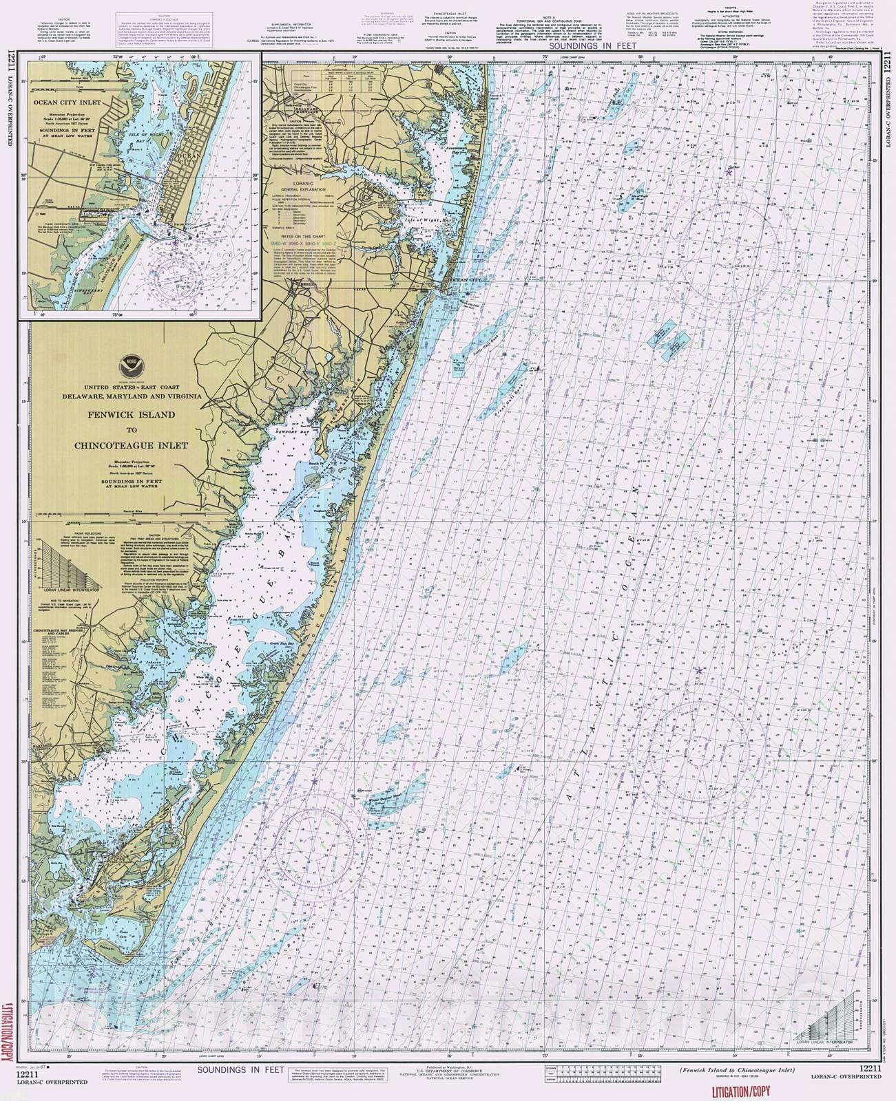 • .Historic Nautical Map - Fenwick Island To Chincoteague Inlet, 1987 NOAA Chart - Virginia, Delaware, Maryland (VA, DE, MD) - Vintage Wall Art