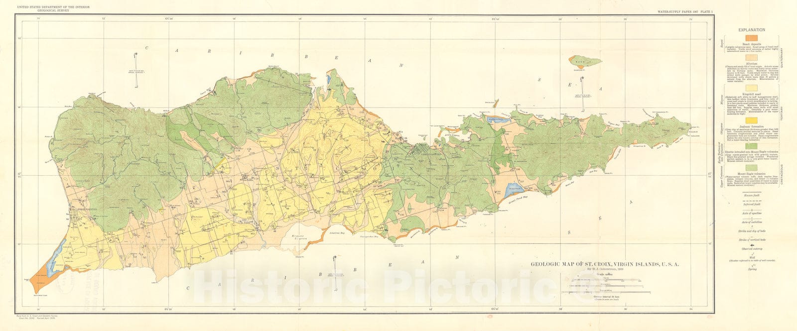 Map : Geology and ground-water resources of St. Croix, Virgin Islands, 1950 Cartography Wall Art :
