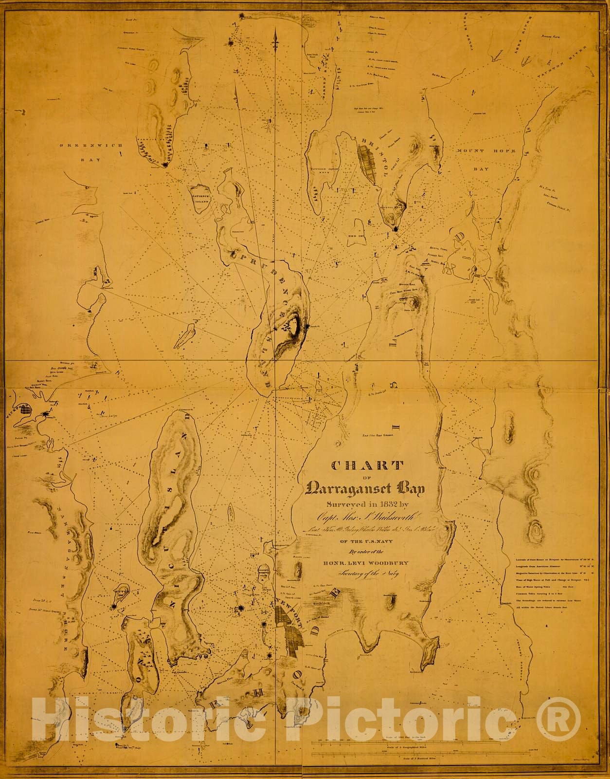 Historic Nautical Map - Map Of Narraganset Bay, 1832 NOAA Chart - Virginia, Connecticut, Rhode Island (VA, CT, RI) - Vintage Wall Art