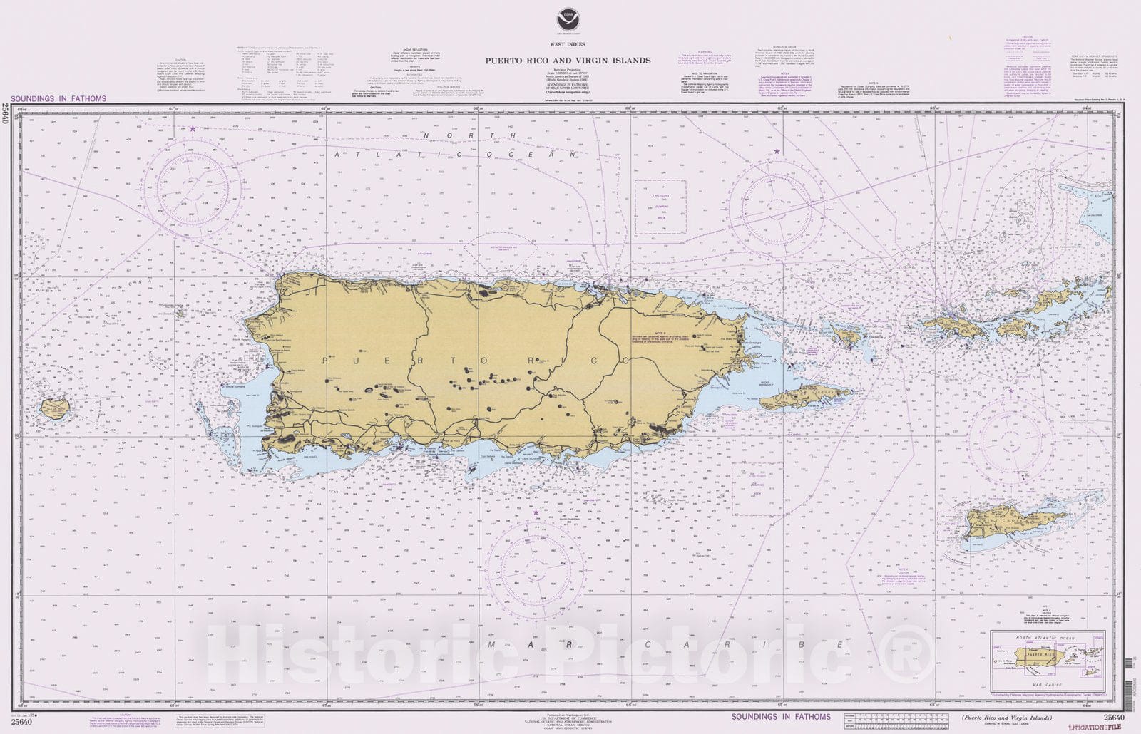 • .Historic Nautical Map - Puerto Rico And Virgin Islands, PR, VI, 1995 NOAA Chart - Vintage Wall Art