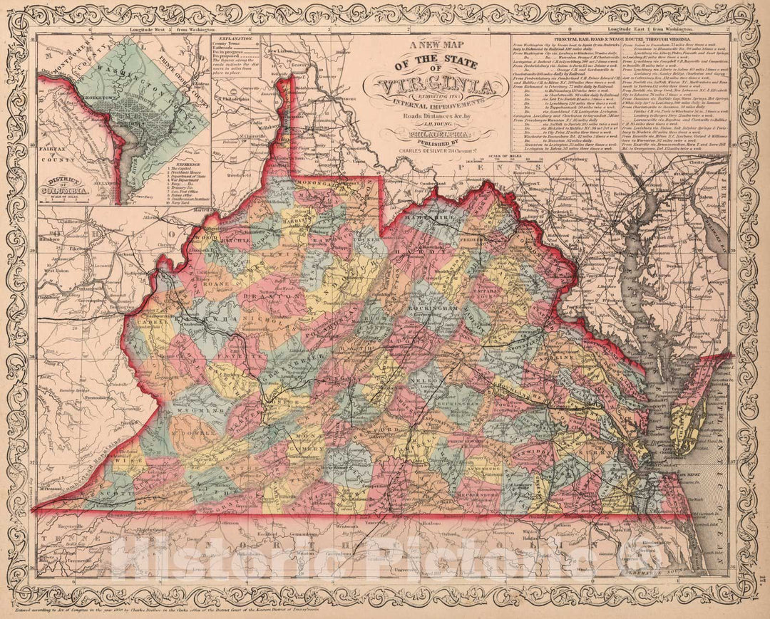 Historic Map : A New Map of the State of Virginia : Published by Charles Desilver, 1859 - Vintage Wall Art