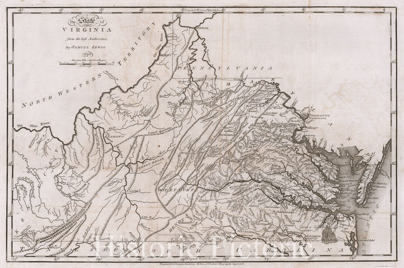 Historic Map - The State of Virginia from the best Authorities, 1795, Matthew Carey - Vintage Wall Art