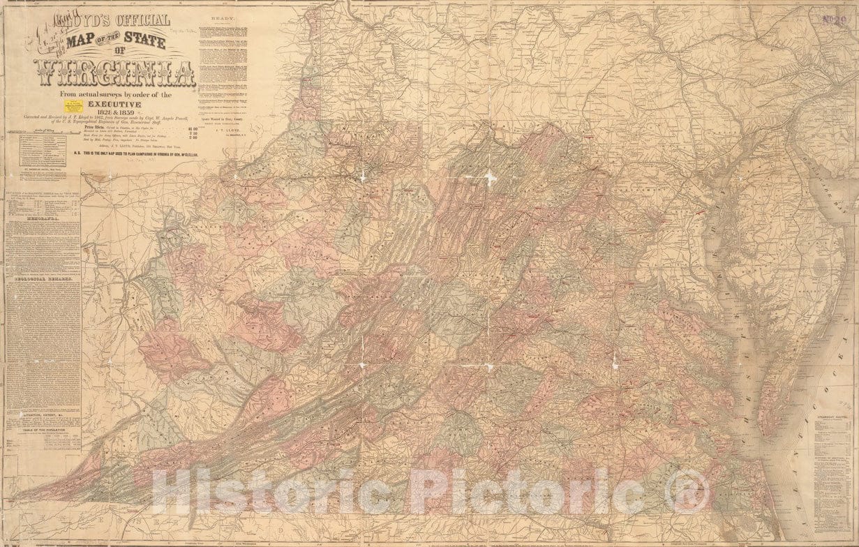 Historical Map, Lloyd's Official map of The State of Virginia from Actual surveys by Order of The Executive, 1828 & 1859, Vintage Wall Art