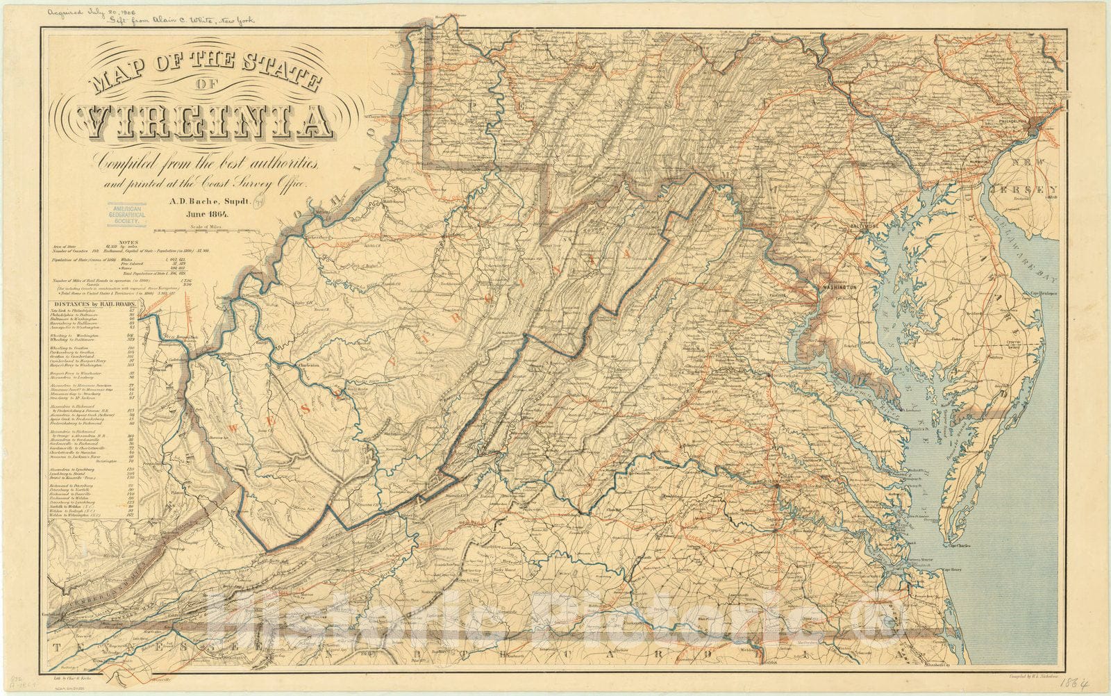 Map : Virginia 1864 1, Map of the state of Virginia , Antique Vintage Reproduction
