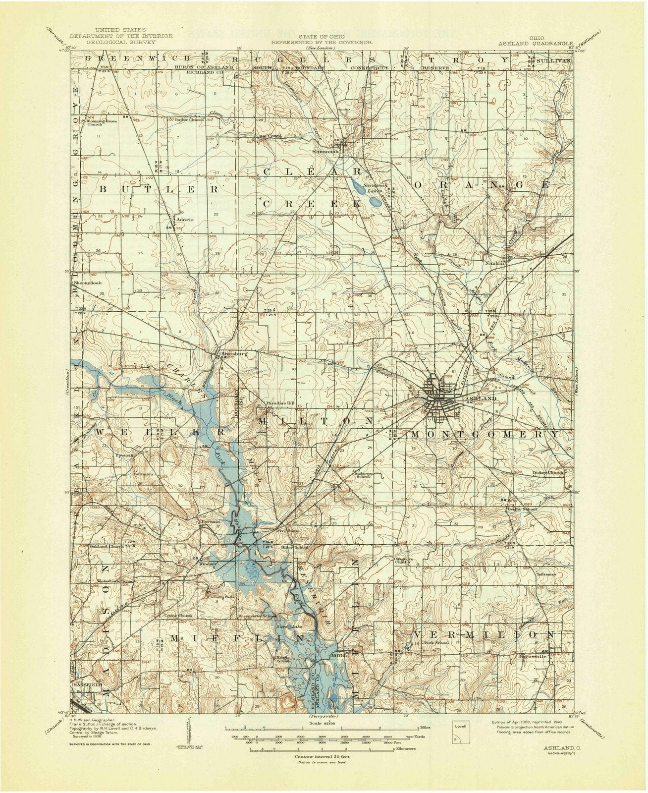 1908 Ashland, OH - Ohio - USGS Topographic Map